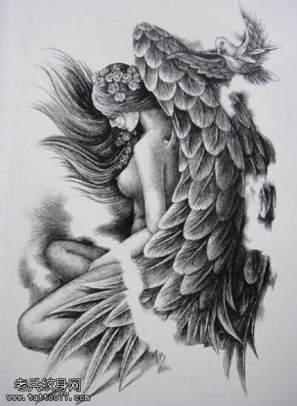 手稿天使纹身图案