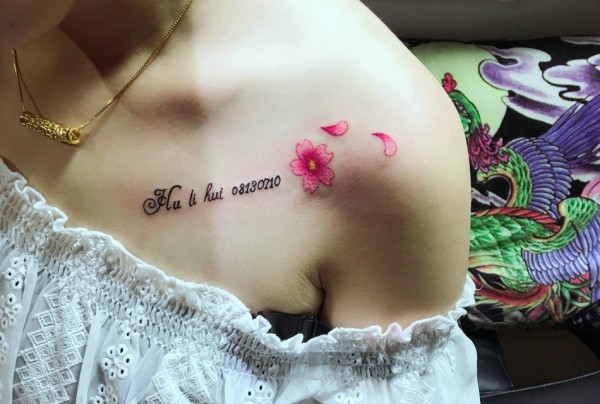 后颈部纹身小图--9张女生脖子后颈处的简约纹身图案