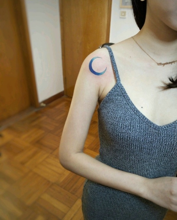 手臂上方弯弯的月亮纹身图案