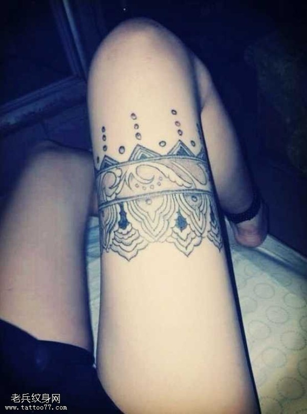 腿部冠王纹身图案