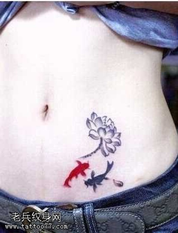腹部双红黑鱼纹身图案