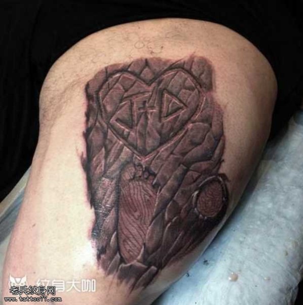 腿部神石头纹身图案