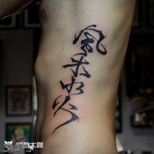 腰部书法纹身图案