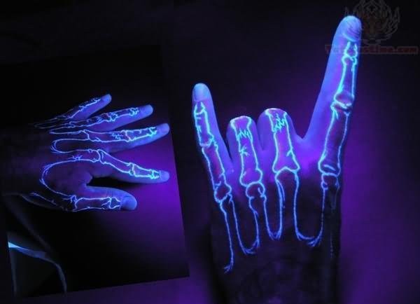 手指关节上的荧光隐形纹身图案