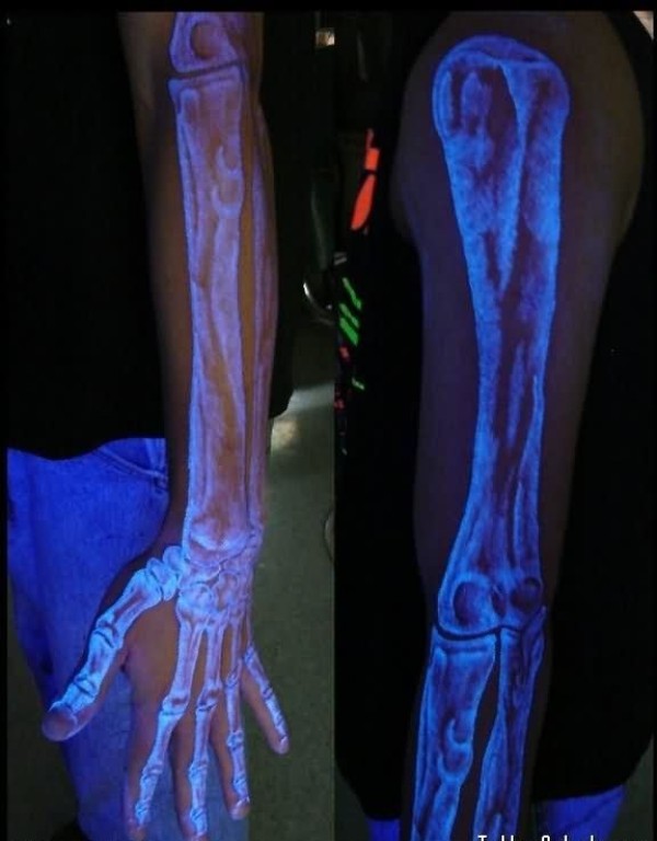 手指关节上的荧光隐形纹身图案