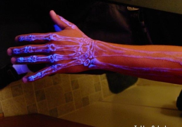 手指关节上的荧光隐形纹身图案
