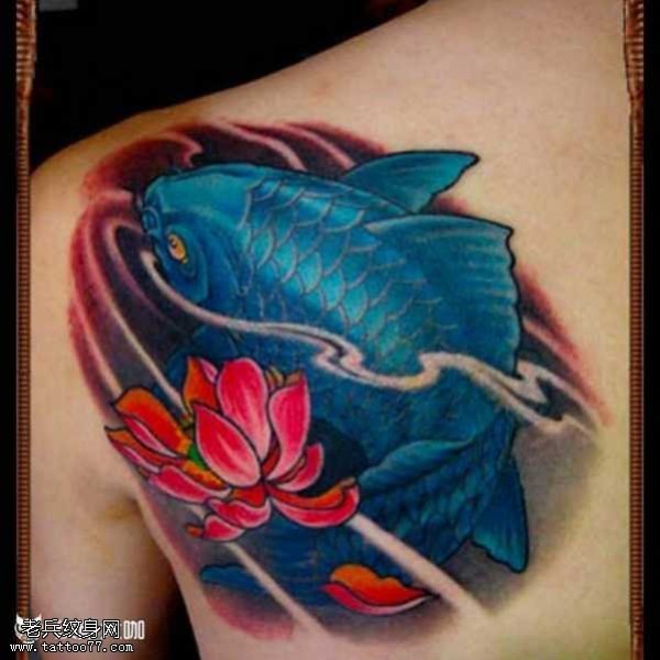 肩部蓝鲤鱼纹身图案