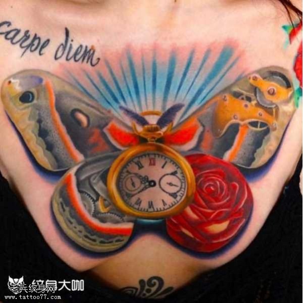 女性大花胸纹身_43张霸气漂亮的女性大花胸纹身图案作品