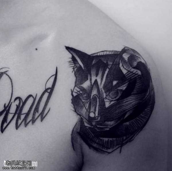 肩部猫咪纹身图案