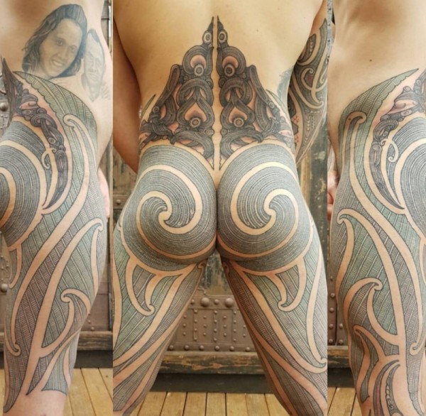 传统花腿纹身--18张传统风格的大花腿纹身图案作品