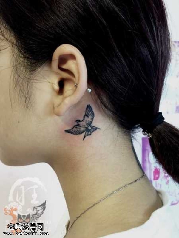 后颈部纹身小图--9张女生脖子后颈处的简约纹身图案