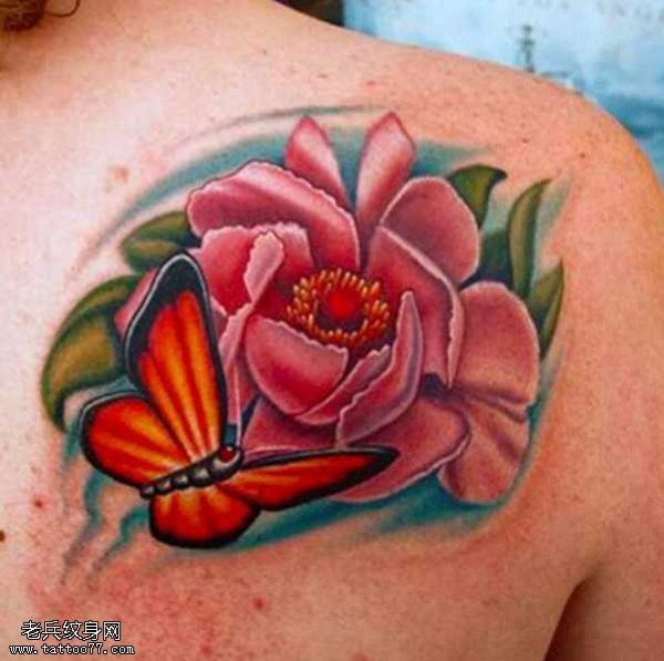 女生肩花纹身_15张女性双肩对称的肩花纹身图案作品图片