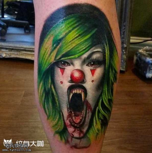 腿部小丑纹身图案