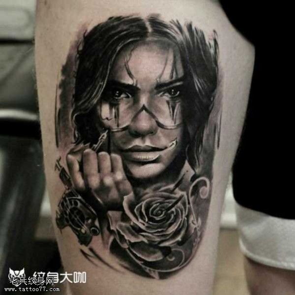 女性肩部肖像刺青_肖像纹身图案大全_纹身图吧