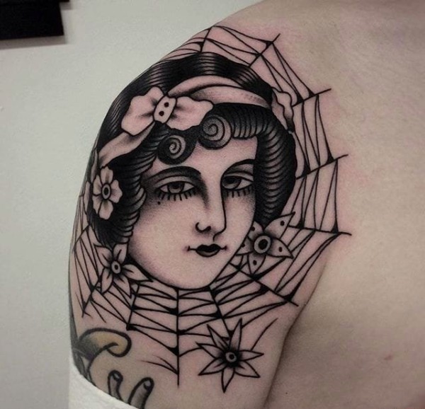 男人大臂黑白彼岸花骷髅_黑白纹身图案大全_纹身图吧