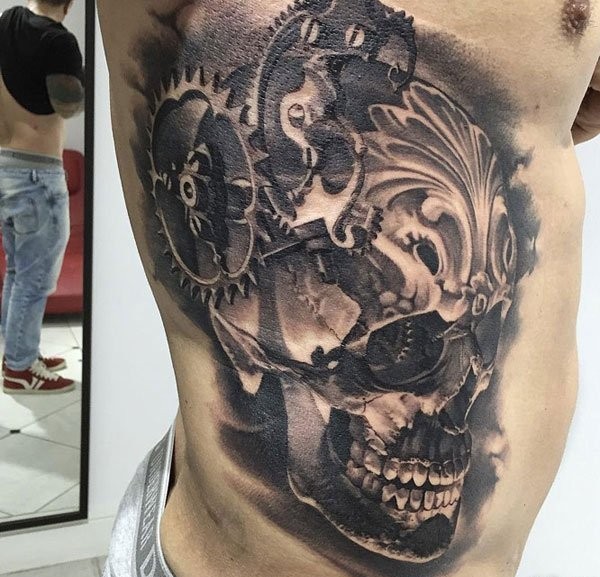 侧腰女骷髅刺青图案图片_骷髅纹身图案大全_纹身图吧