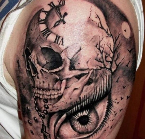 恐怖而霸气的骷髅头纹身图案