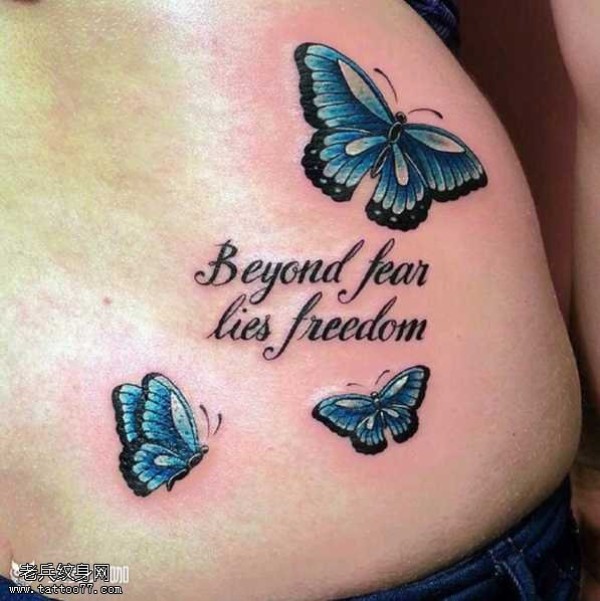 分享一款腰部时尚性感的蝶恋花纹身图案_腰部纹身图案大全_纹身图吧