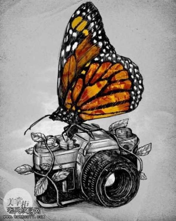 手稿相机蝴蝶纹身图案