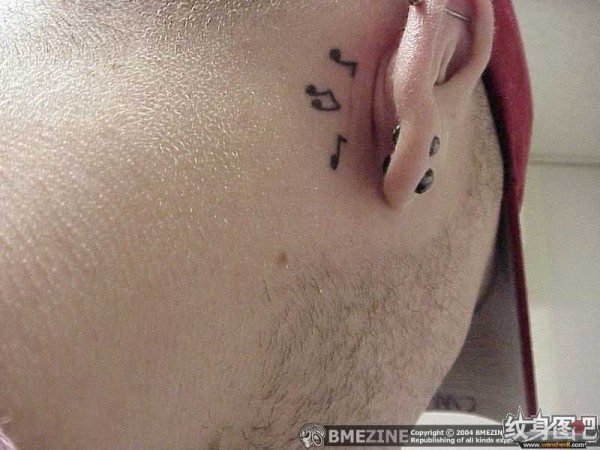 耳朵背后的音符纹身