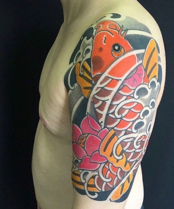 大臂一款具有男人味的红鲤鱼纹身图案