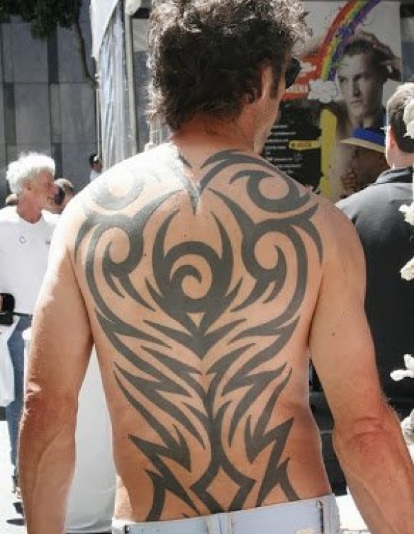 男性背部帅气的部落图腾纹身图案