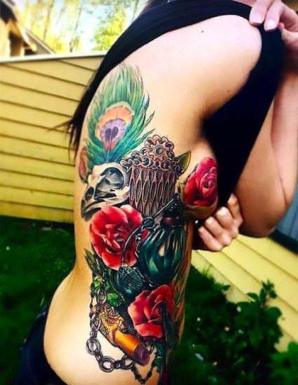 侧腰霸气老虎头纹身_腰部纹身图案大全_纹身图吧