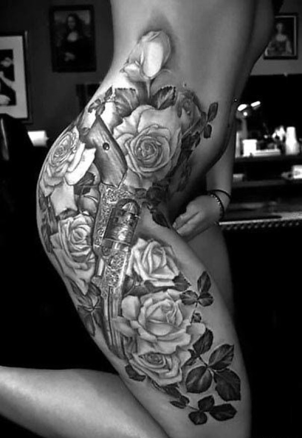 分享一款腰部时尚性感的蝶恋花纹身图案_腰部纹身图案大全_纹身图吧