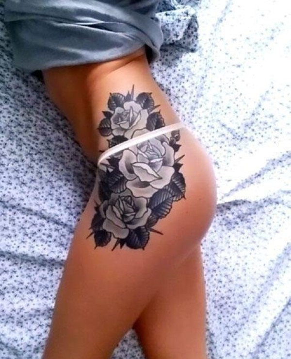 分享一款腰部时尚性感的蝶恋花纹身图案_腰部纹身图案大全_纹身图吧