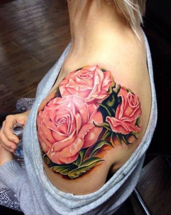 女生肩花纹身_15张女性双肩对称的肩花纹身图案作品图片