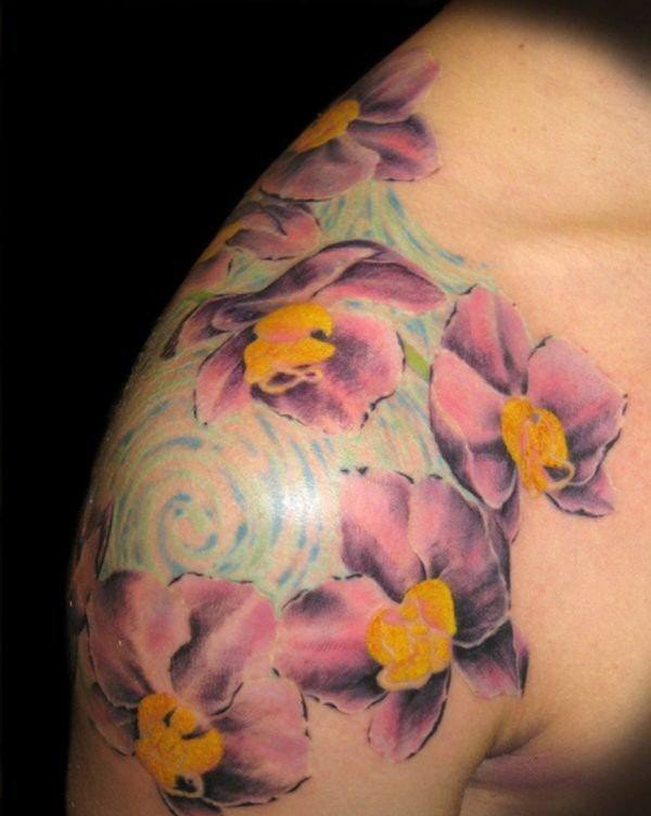 女生肩花纹身_15张女性双肩对称的肩花纹身图案作品图片