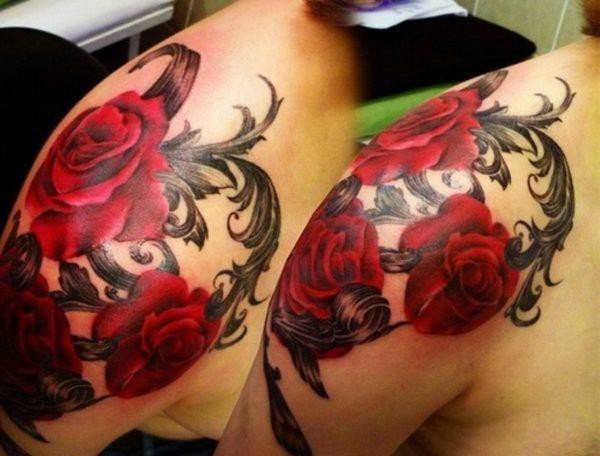 女生肩花纹身_15张女性双肩对称的肩花纹身图案作品图片