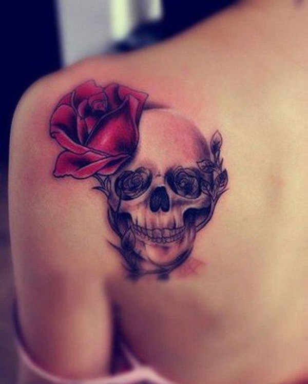 女生肩花纹身_15张女性双肩对称的肩花纹身图案作品图片