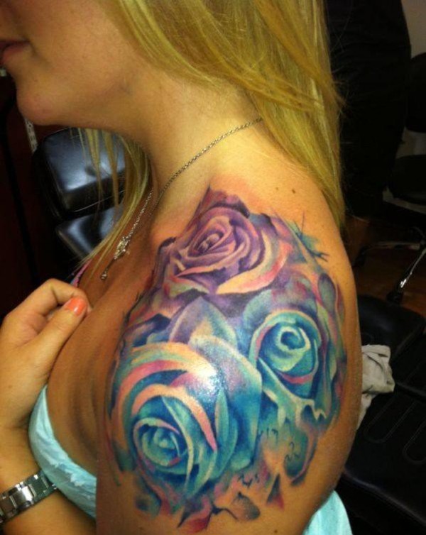 女生肩花纹身_15张女性双肩对称的肩花纹身图案作品图片