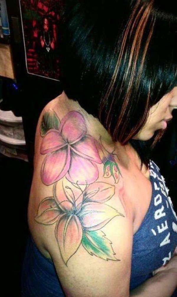 女生肩花纹身_15张女性双肩对称的肩花纹身图案作品图片