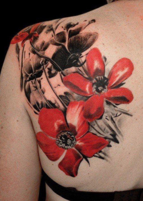 女性肩膀上多款漂亮的花朵纹身图案