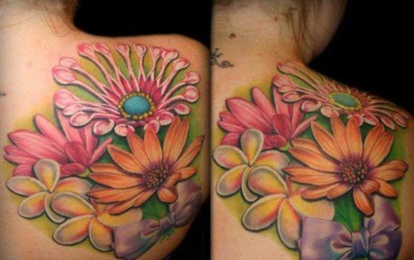 女生肩花纹身_15张女性双肩对称的肩花纹身图案作品图片