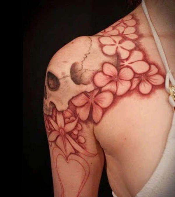 女生肩花纹身_15张女性双肩对称的肩花纹身图案作品图片