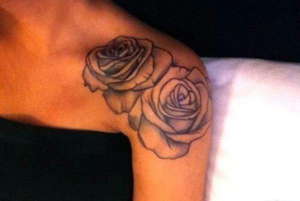 女生肩花纹身_15张女性双肩对称的肩花纹身图案作品图片
