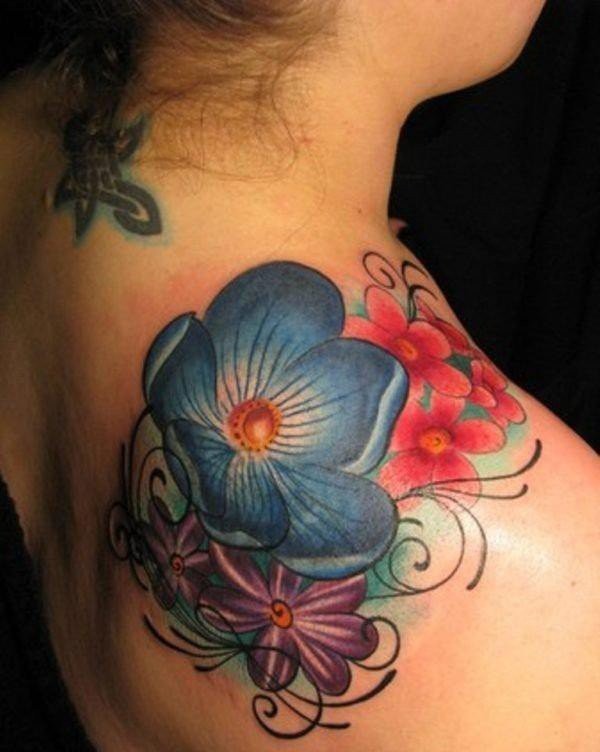 女生肩花纹身_15张女性双肩对称的肩花纹身图案作品图片