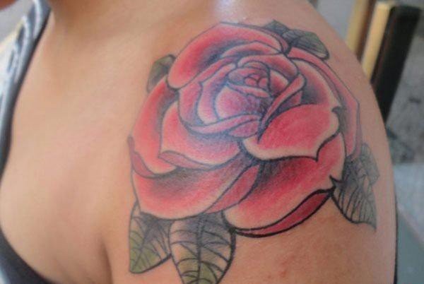 女生肩花纹身_15张女性双肩对称的肩花纹身图案作品图片