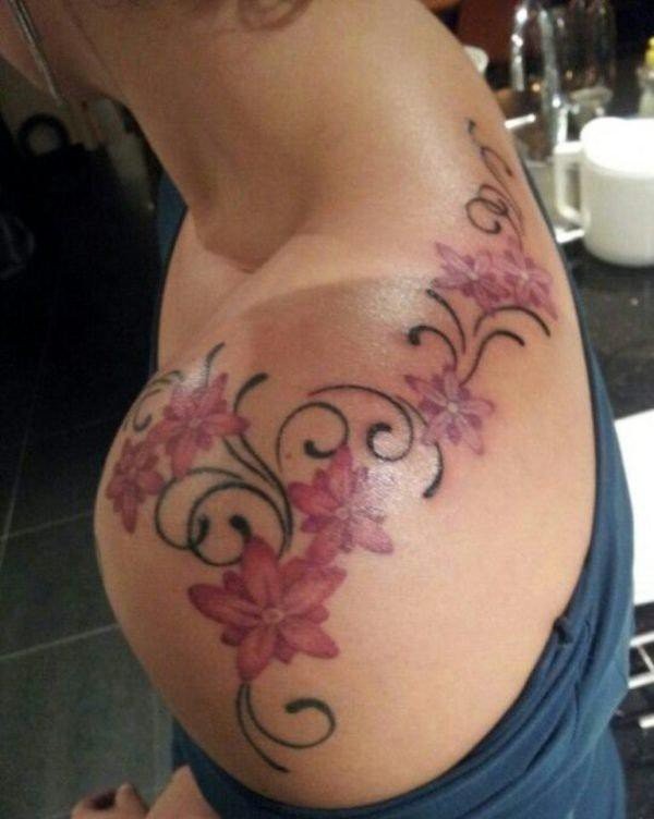 女生肩花纹身_15张女性双肩对称的肩花纹身图案作品图片
