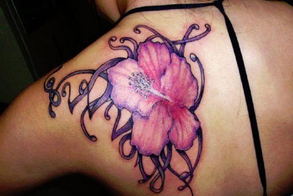 女生肩花纹身_15张女性双肩对称的肩花纹身图案作品图片