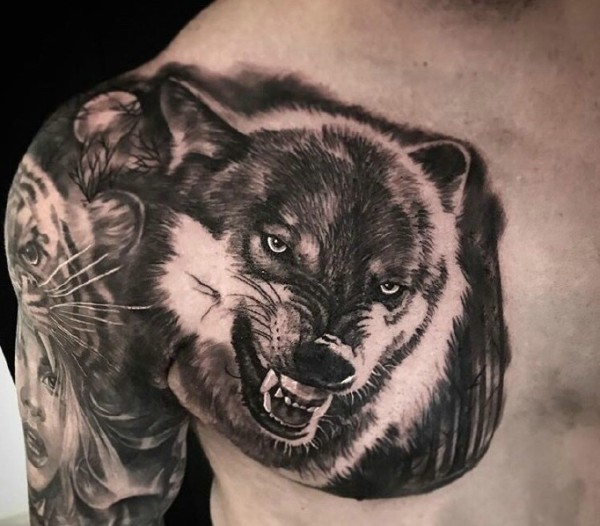 霸气半胛老虎纹身_动物纹身图案大全_纹身图吧