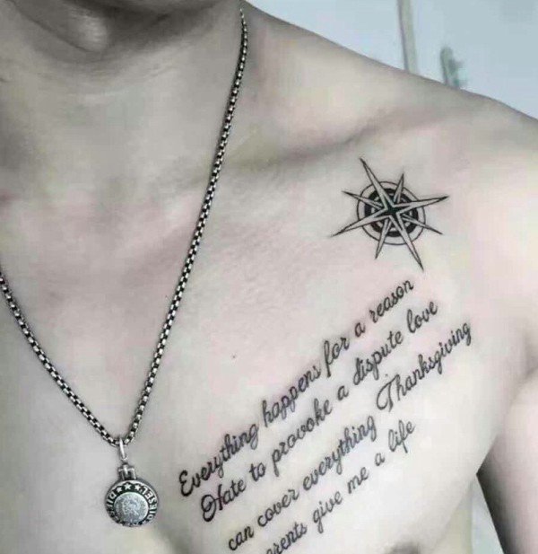 纹身图案胸部男 简洁大方的男生胸部纹身图案