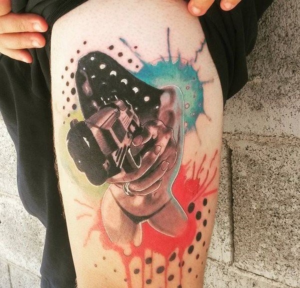 帅气的彩色花腿纹身水墨画纹身图案