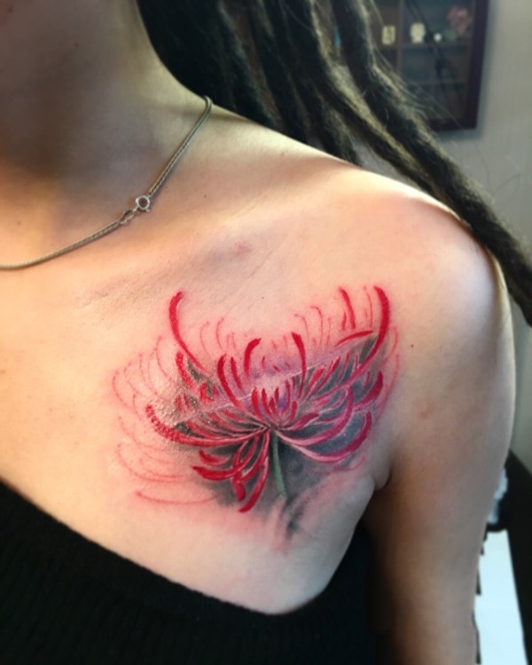 飘香彼岸花,胸部彼岸花彩绘纹身图案