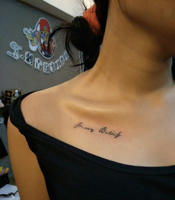 女生锁骨处小清新英文纹身图案