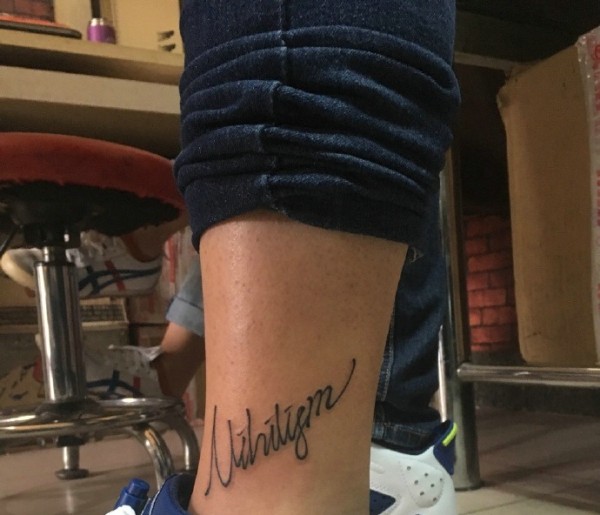 男士小腿处简单小英文纹身图案