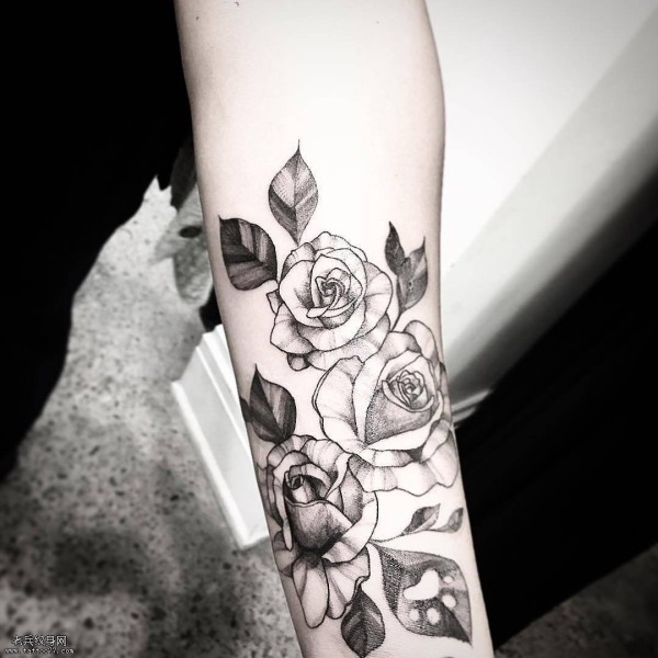 欧美玫瑰纹身 男生手臂上花朵纹身图片